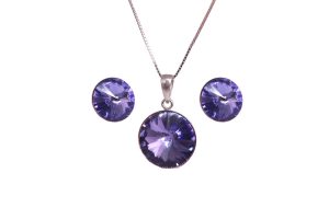 Conjunto aretes talla redonda violeta ensamblado y embellecido con cristal Swarovski