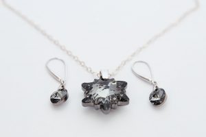 Conjunto collar, dije, y colgantes Plata 925 ensamblado y embellecido con cristal original SWAROVSKI.