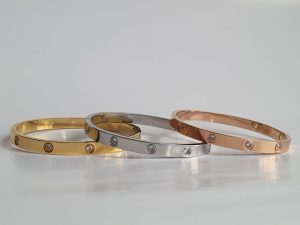 Aros en acero con baño de oro blanco, oro rosa, y oro amarillo ensamblado y embellecido con cristal original Swarovski.